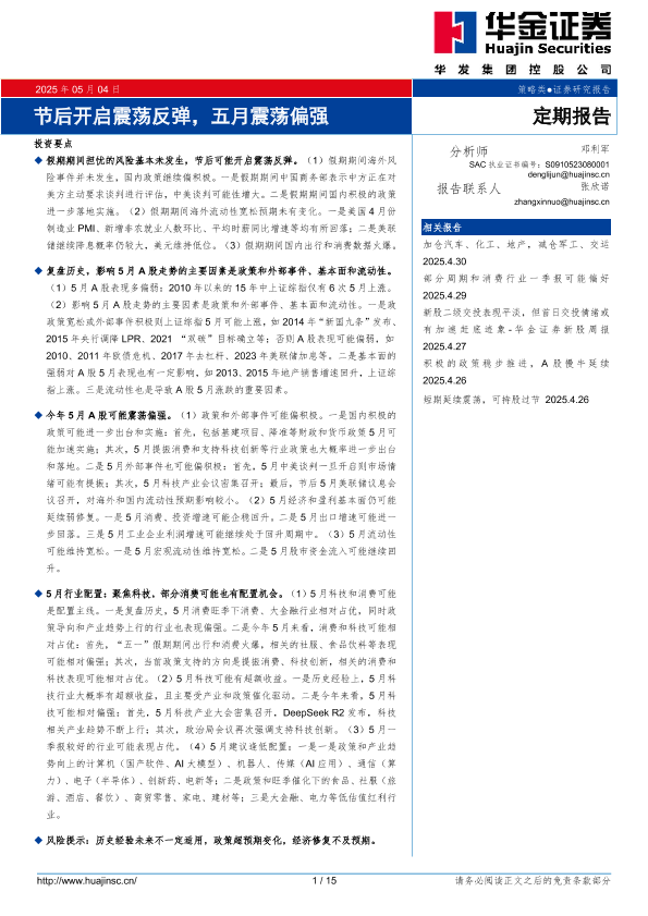 【华金证券】【20250504】节后开启震荡反弹,五月震荡偏强-15页