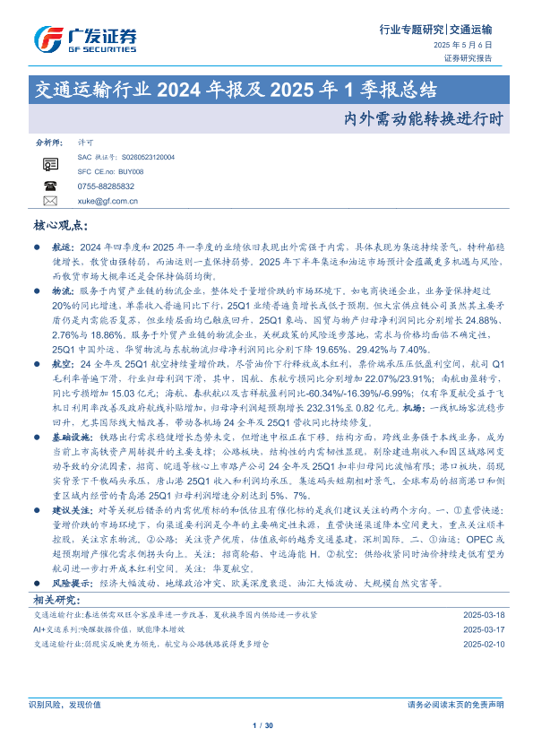 【广发证券】【20250506】交通运输行业2024年报及2025年1季报总结-30页