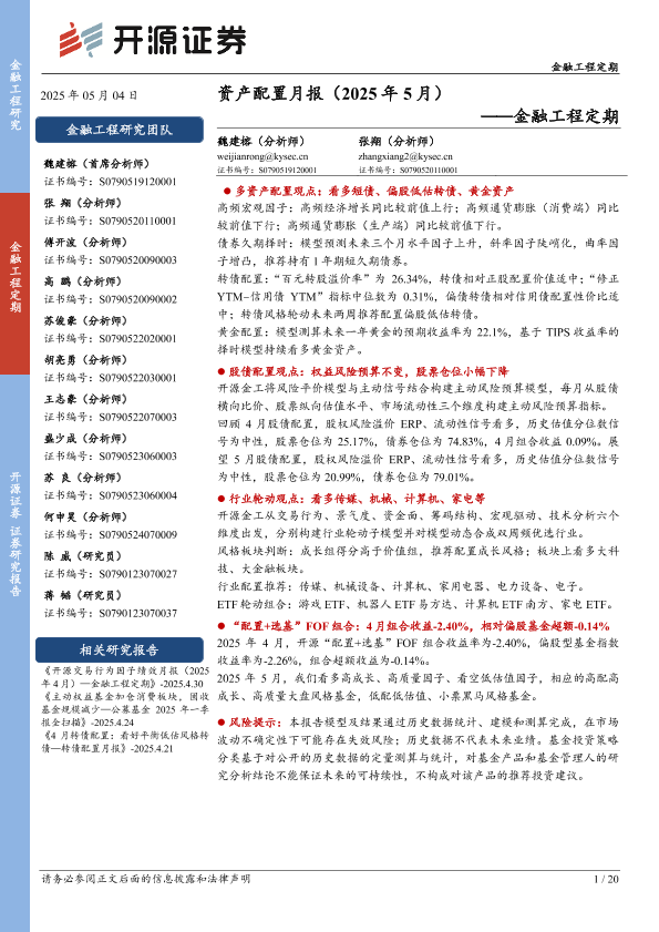 【开源证券】【20250504】资产配置月报(2025年5月)——金融工程定期-20页