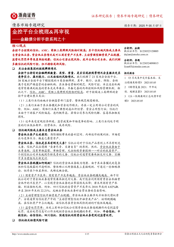 信托风险 资金池业务 金融债 金融牌照 金控平台