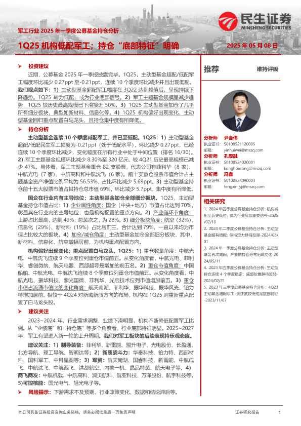 【民生证券】【20250508】军工行业2025年一季度公募基金持仓分析-17页