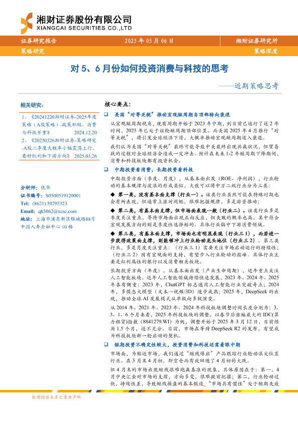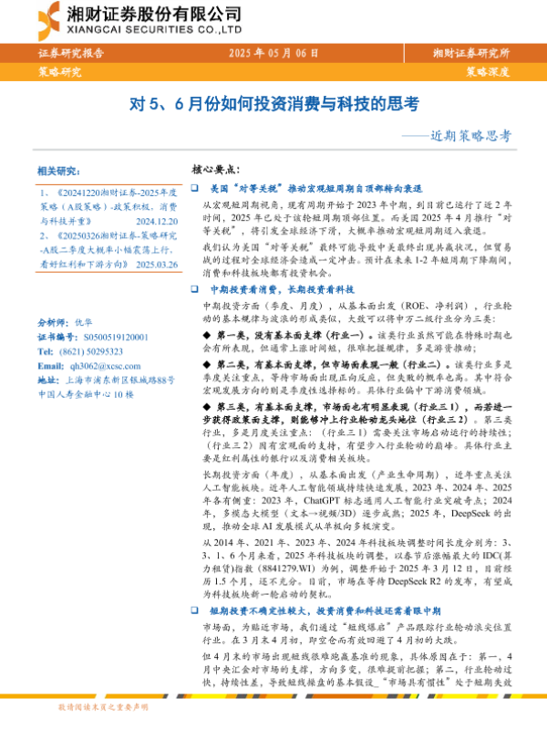 【湘财证券】【20250506】近期策略思考:对5、6月份如何投资消费与科技的思考-28页