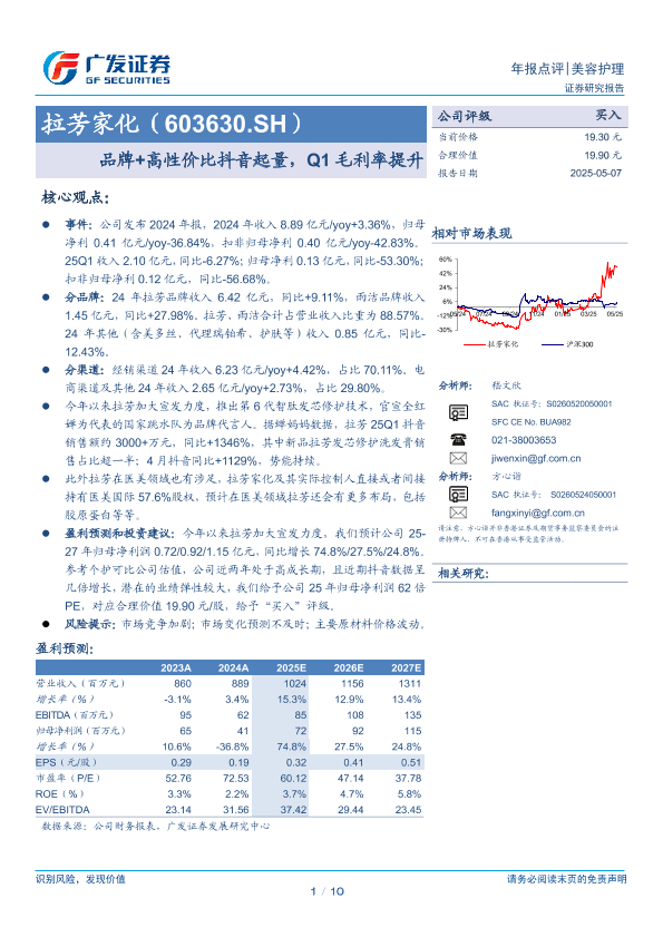 【广发证券】【20250507】拉芳家化品牌+高性价比抖音起量,Q1毛利率提升-10页