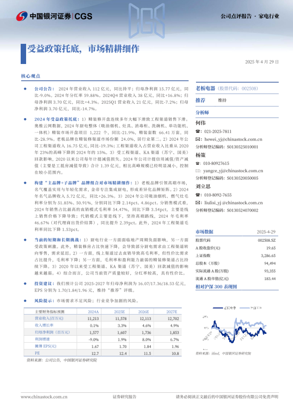【银河证券】【20240429】老板电器受益政策托底,市场精耕细作-10页