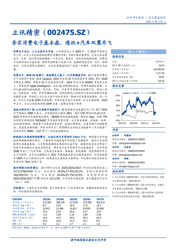 【国盛证券】【20250507】立讯精密(002475)夯实消费电子基本盘,通讯+汽车双翼齐飞-42页