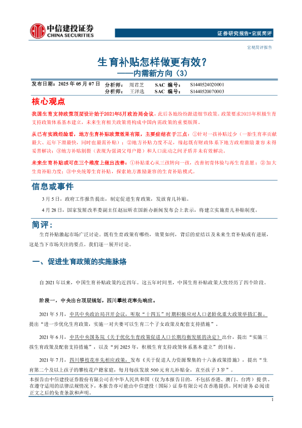 【中信建投证券】【20250507】内需新方向(3):生育补贴怎样做更有效?-10页