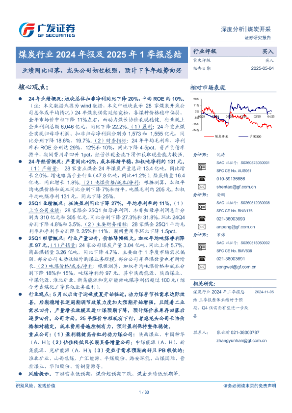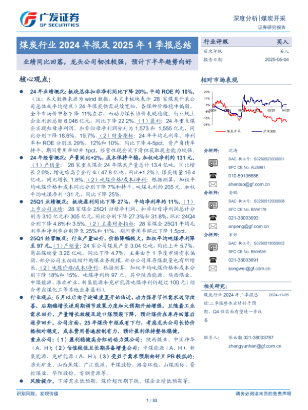 【广发证券】【20250504】煤炭行业2024年报及2025年1季报总结-33页