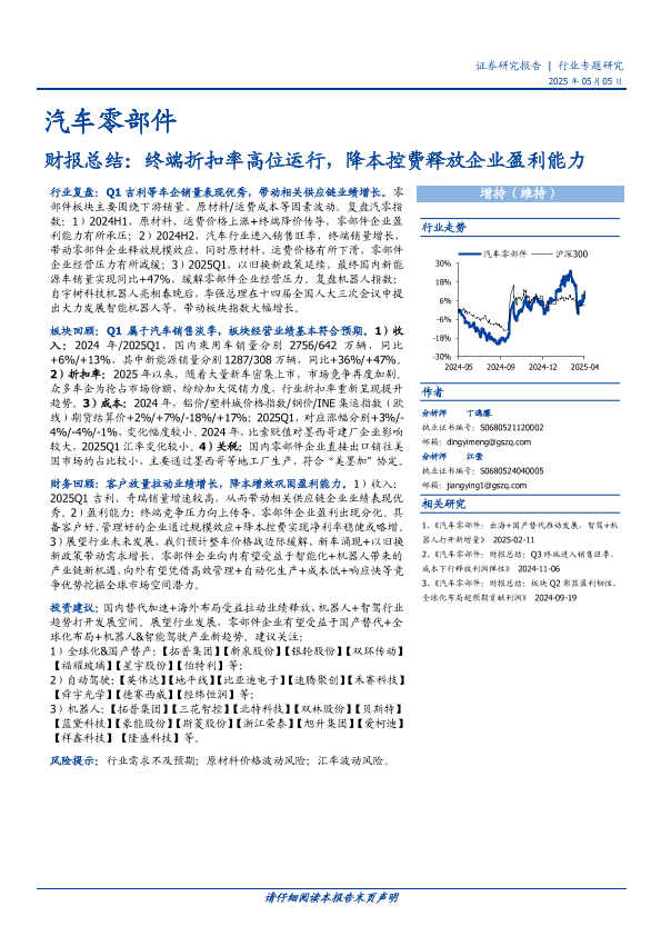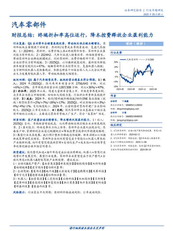 【国盛证券】【20250505】汽车零部件行业财报总结:终端折扣率高位运行,降本控费释放企业盈利能力-33页
