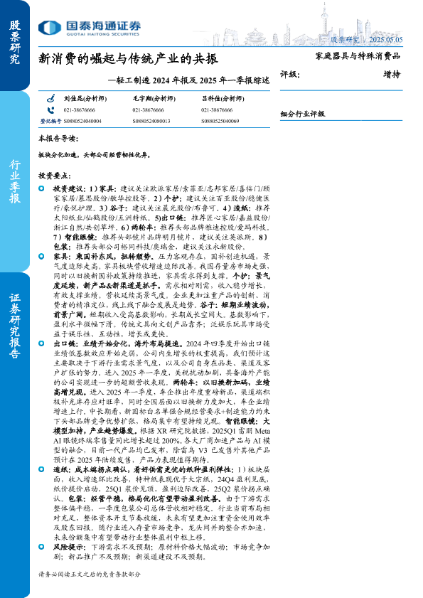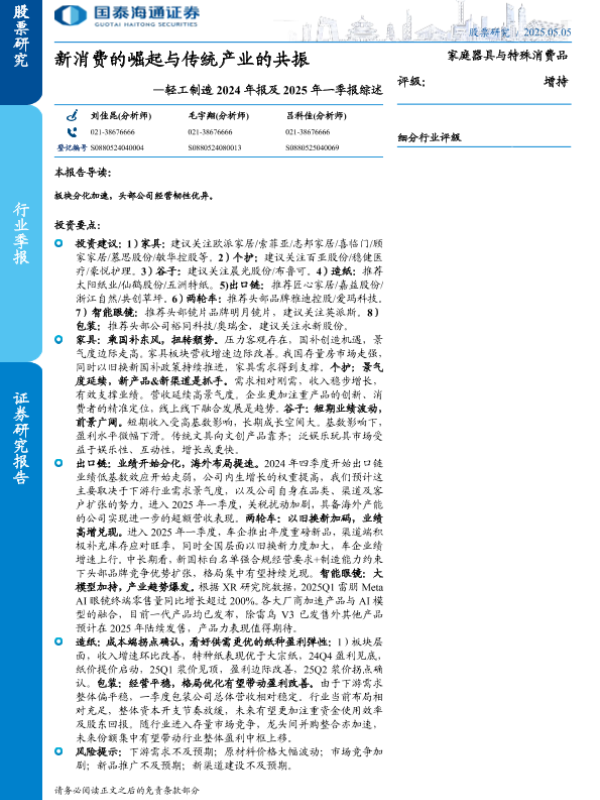 【国泰海通证券】【20250505】轻工制造行业2024年报及2025年一季报综述:新消费的崛起与传统产业的共振-54页
