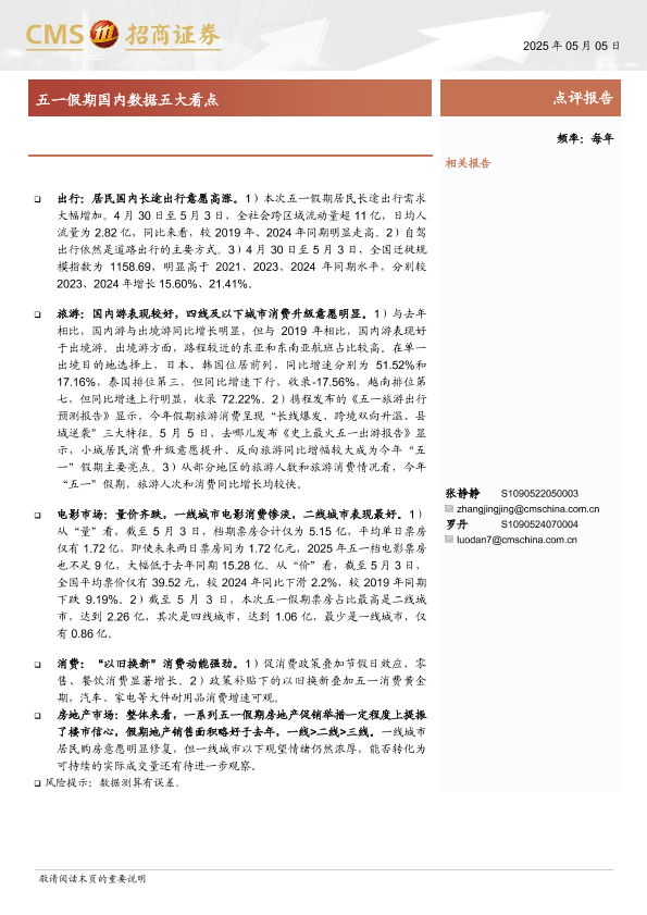 五一假期 出行数据 房地产市场 旅游市场 电影市场