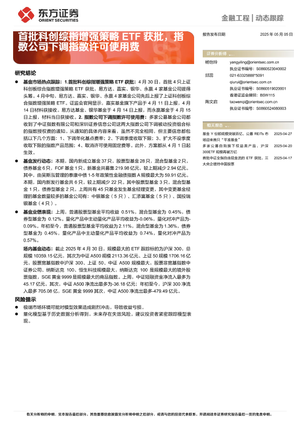 【东方证券】【20250505】首批科创综指增强策略ETF获批,指数公司下调指数许可使用费-13页