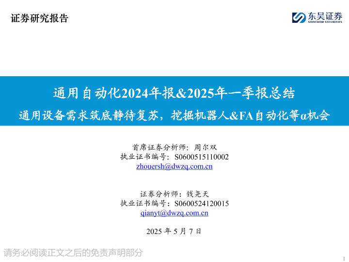 【东吴证券】【20250507】通用自动化行业2024年报&2025年一季报总结-52页
