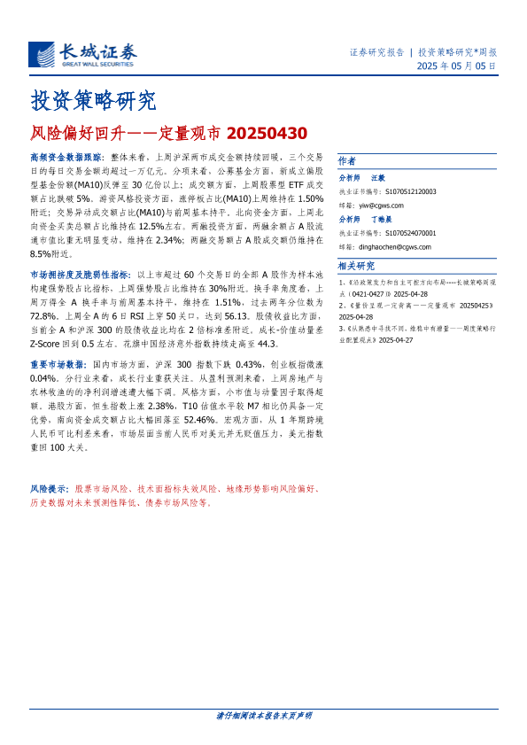 【长城证券】【20250505】投资策略研究:风险偏好回升——定量观市-16页