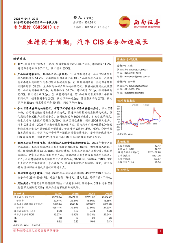 【西南证券】【20250430】韦尔股份2025年一季报点评-11页
