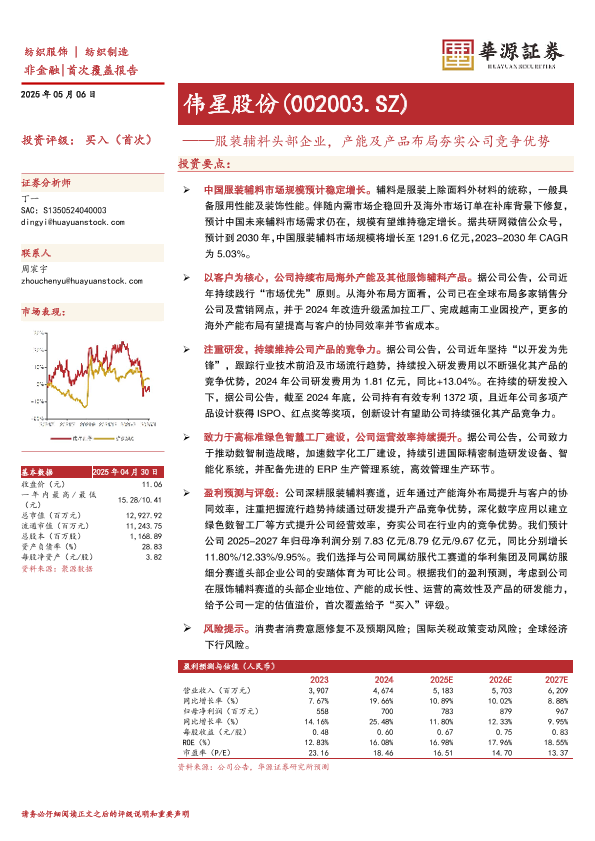 【华源证券】【20250506】伟星股份(002003)服装辅料头部企业,产能及产品布局夯实公司竞争优势-16页