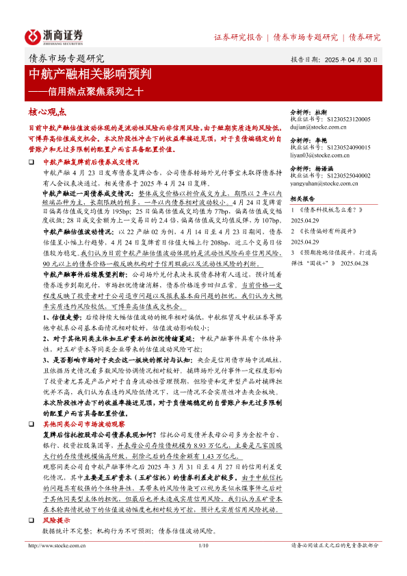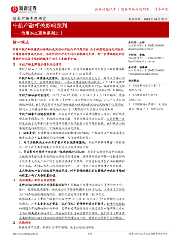 【浙商证券】【20250430】信用热点聚焦系列之十:中航产融相关影响预判-10页