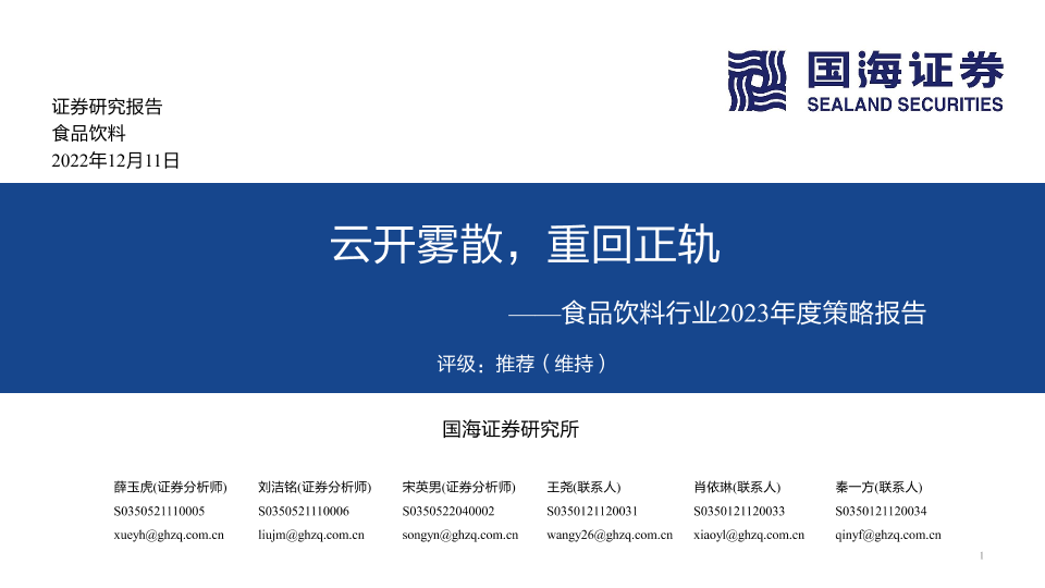 【国海证券】【20221211】食品饮料行业2023年度策略报告:云开雾散,重回正轨-43页