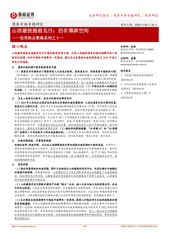 【浙商证券】【20250430】信用热点聚焦系列之十一,山西建投提前兑付:仍有博弈空间-10页