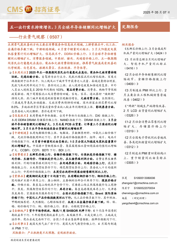 【海通证券】【20250507】行业景气观察:五一出行需求持续增长,3月全球半导体销额同比增幅扩大-36页