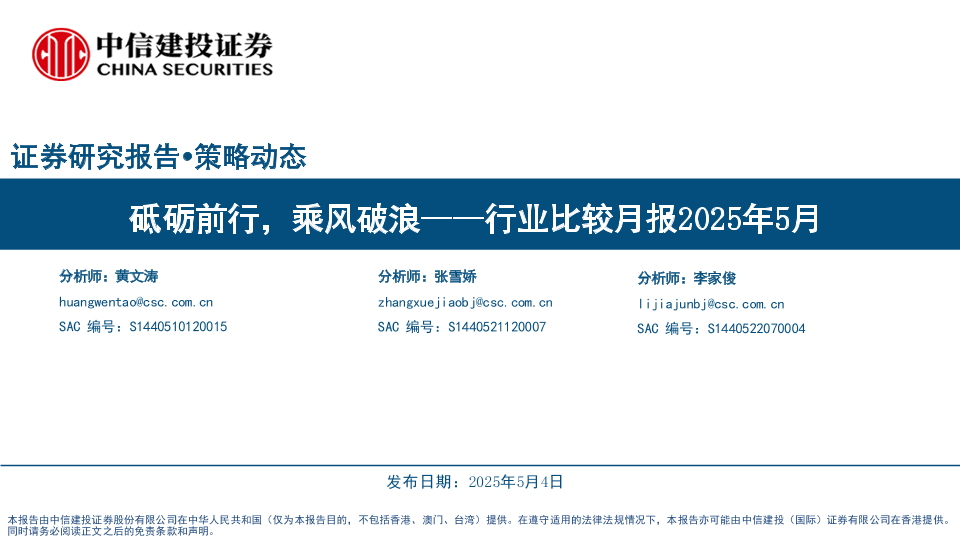 【中信建投证券】【20250504】行业比较月报2025年5月:砥砺前行,乘风破浪-35页