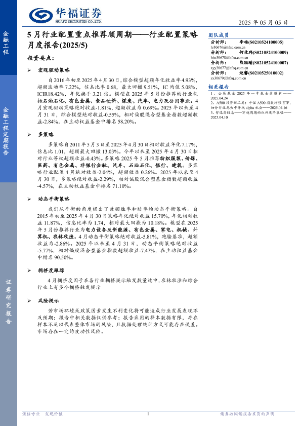 【华福证券】【20250505】行业配置策略月度报告-13页
