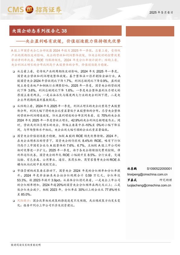 【海通证券】【20250506】央国企动态系列报告之38:央企盈利略有放缓,价值创造能力保持领先优势-38页