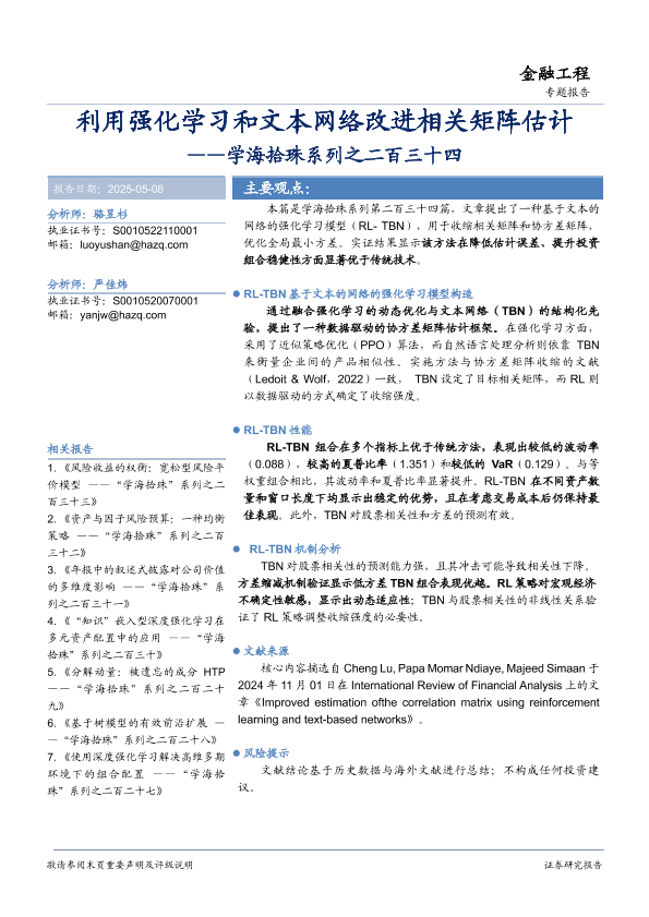【华安证券】【20250508】利用强化学习和文本网络改进相关矩阵估计-28页
