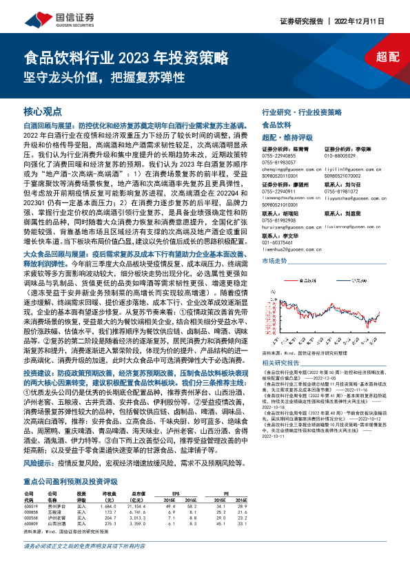 【国信证券】【20221211】食品饮料行业2023年投资策略:坚守龙头价值,把握复苏弹性-42页