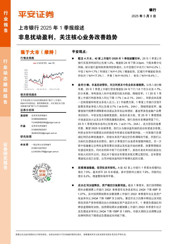 【平安证券】【20250508】银行业上市银行2025年1季报综述:非息扰动盈利,关注核心业务改善趋势-20页