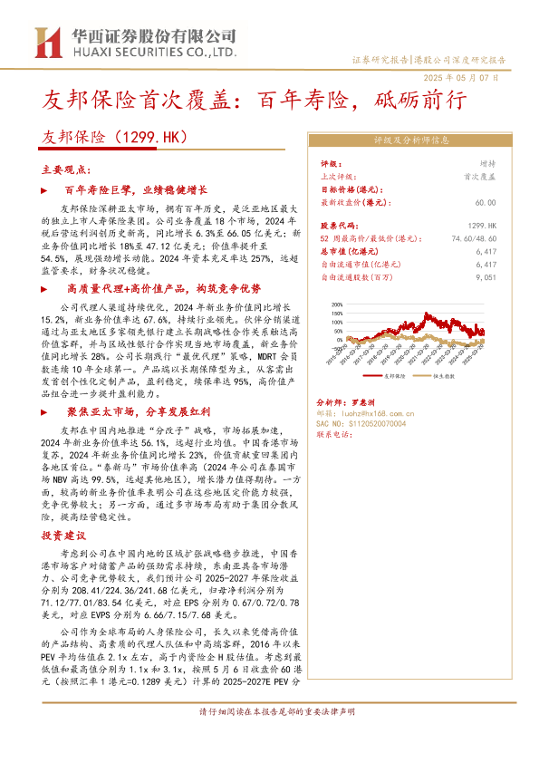 【华西证券】【20250507】友邦保险首次覆盖:百年寿险,砥砺前行-30页