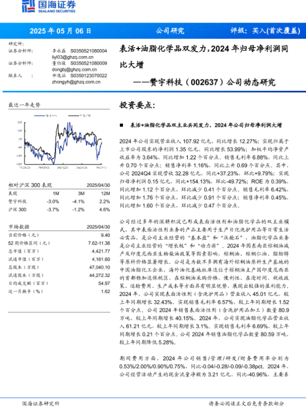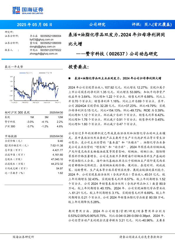 【国海证券】【20250506】表活+油脂化学品双发力,2024年归母净利润同比大增-10页