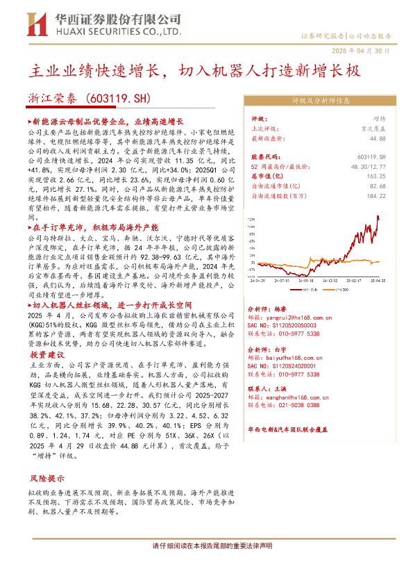 【华西证券】【20250430】浙江荣泰主业业绩快速增长,切入机器人领域打造新增长极-12页