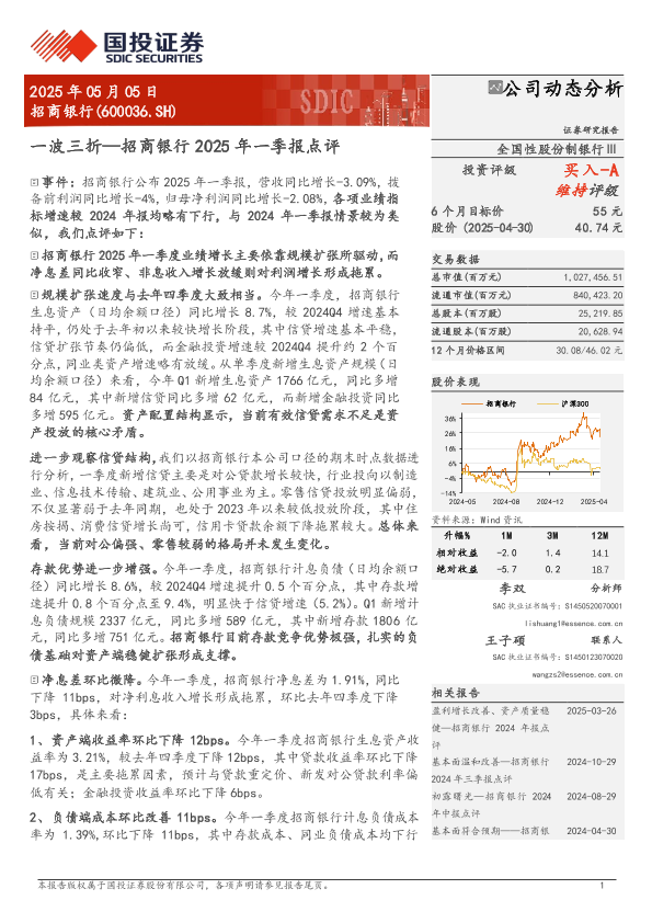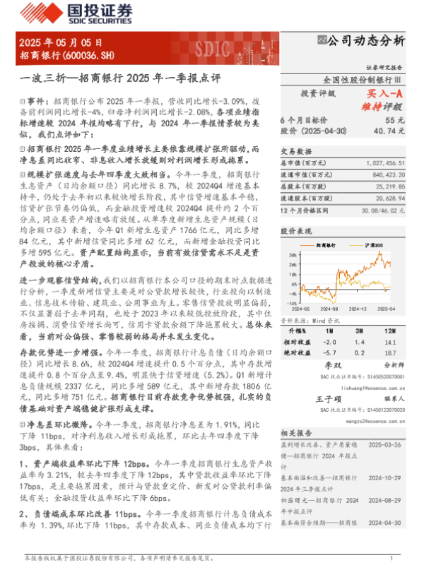 【国投证券】【20250505】招商银行2025年一季报点评:一波三折-13页