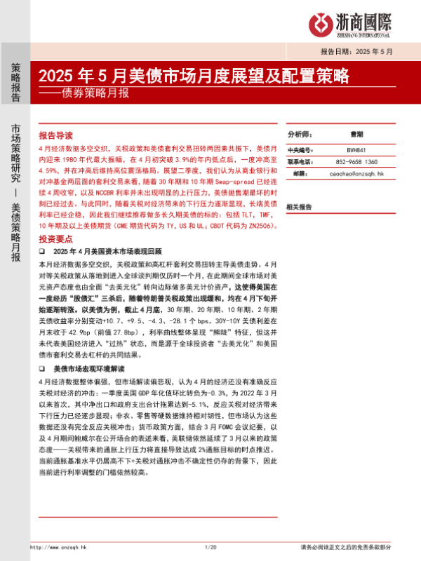 【浙商国际】【202505】2025年5月美债市场月度展望及配置策略-20页