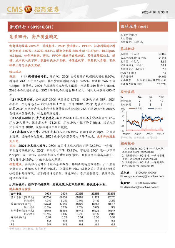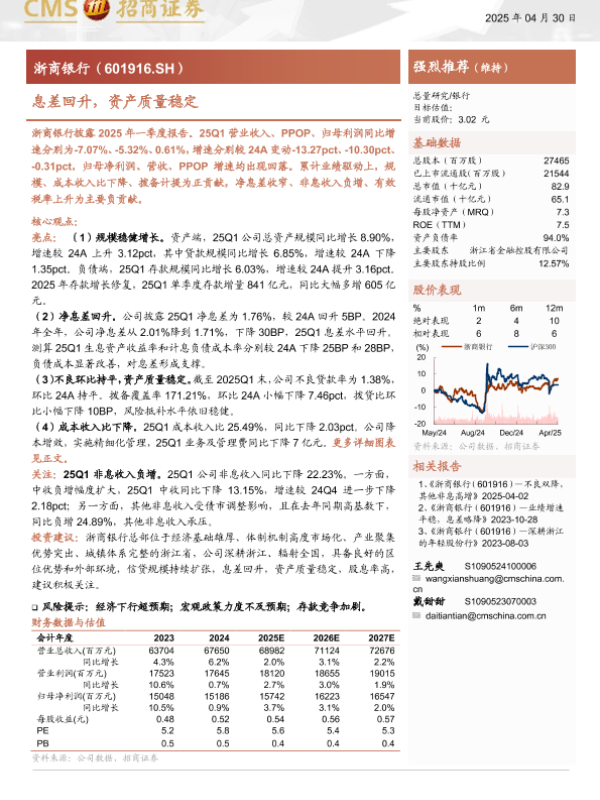 息差回升 浙商银行 财务分析 资产质量 银行业务