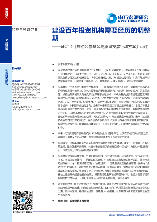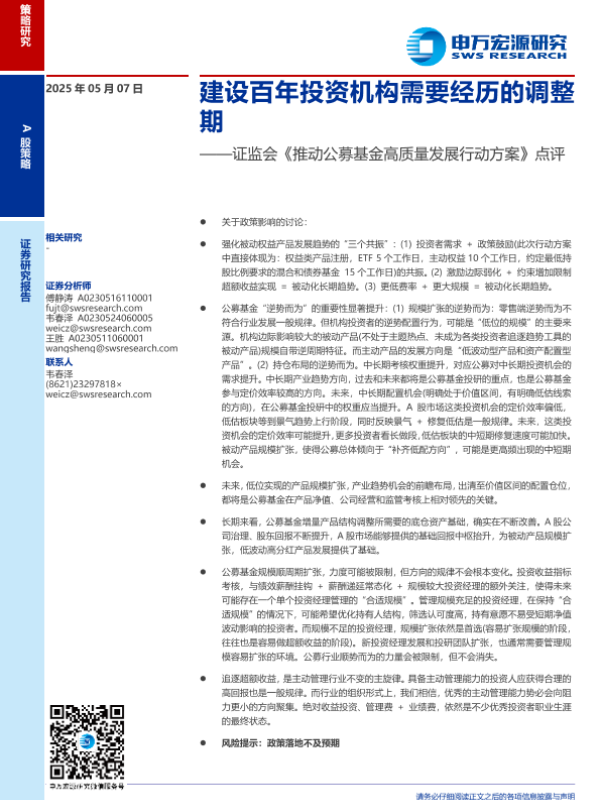 公募基金 投资机构 政策分析 调整期 高质量发展