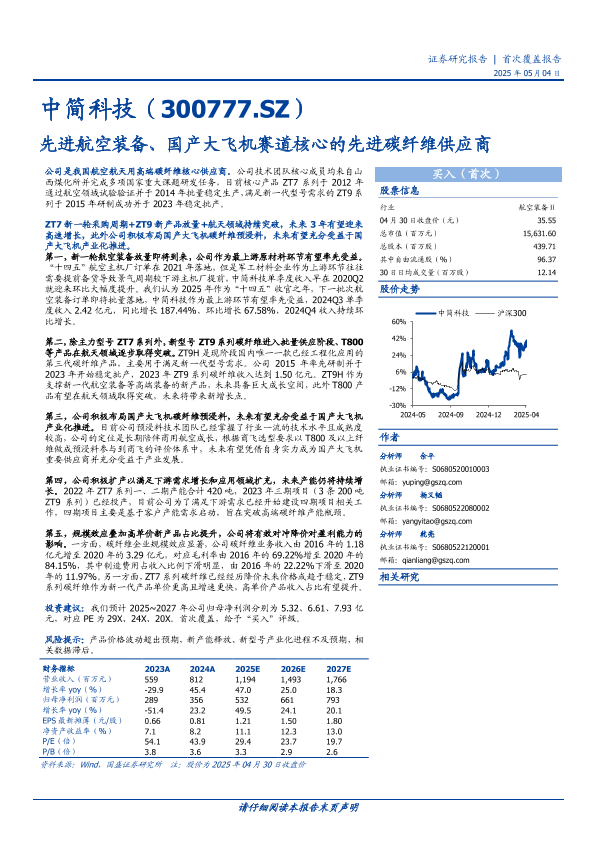 【国盛证券】【20250504】中简科技先进航空装备、国产大飞机赛道核心的先进碳纤维供应商-15页