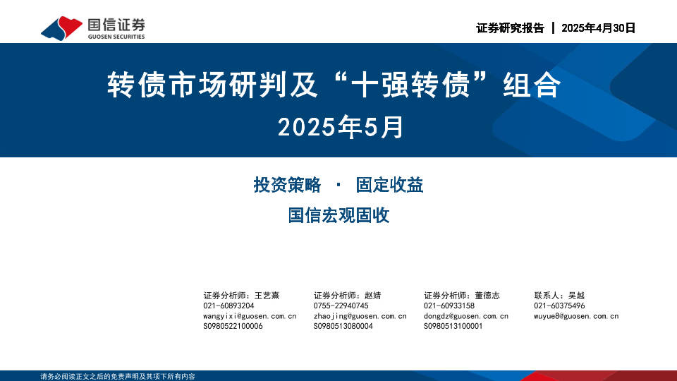 【国信证券】【20250430】转债市场研判及“十强转债”组合-30页