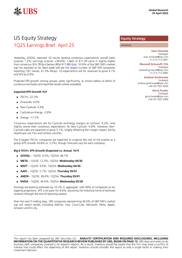 【UBS Securities LLC】【20250425】US Equity Strategy 1Q25 Earnings Brief-18页