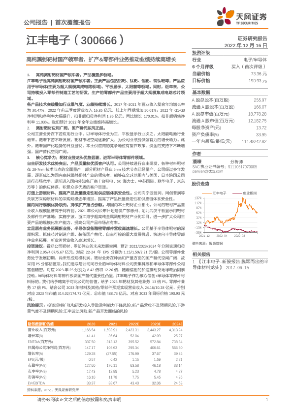 【天风证券】【20221216】高纯溅射靶材国产领军者,扩产&零部件业务推动业绩持续高增长-23页