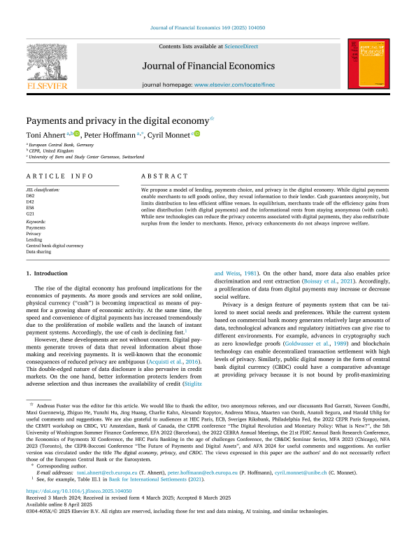 【Toni Ahnert】【2025】Payments and privacy in the digital economy-13页
