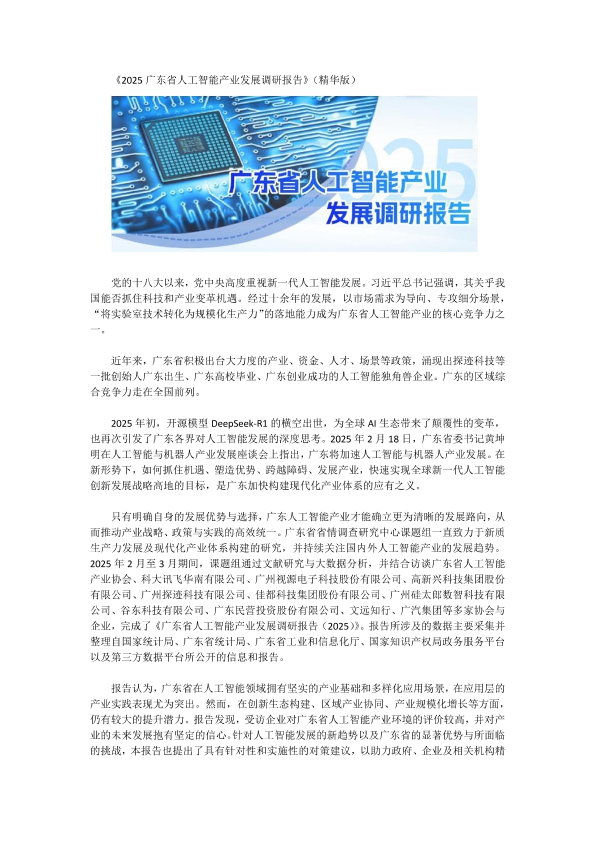 【广东省省情调查研究中心】【2025】2025广东省人工智能产业发展调研报告-10页