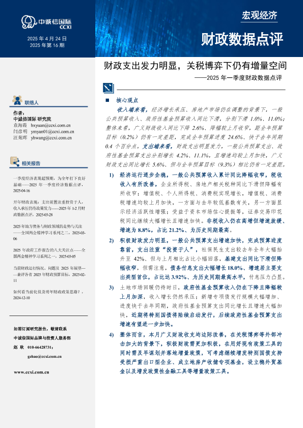 【中诚信国际】【20250424】财政支出发力明显,关税博弈下仍有增量空间-9页