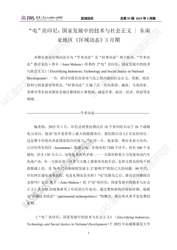 东南亚 印度尼西亚 政治 电气化 社会正义