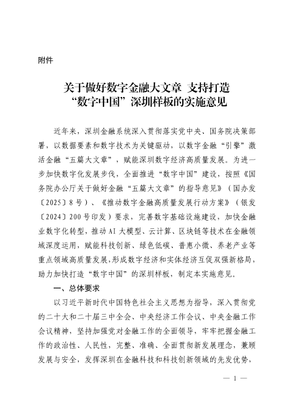 【深圳金融系统】【2025】关于做好数字金融大文章支持打造“数字中国”深圳样板的实施意见-10页