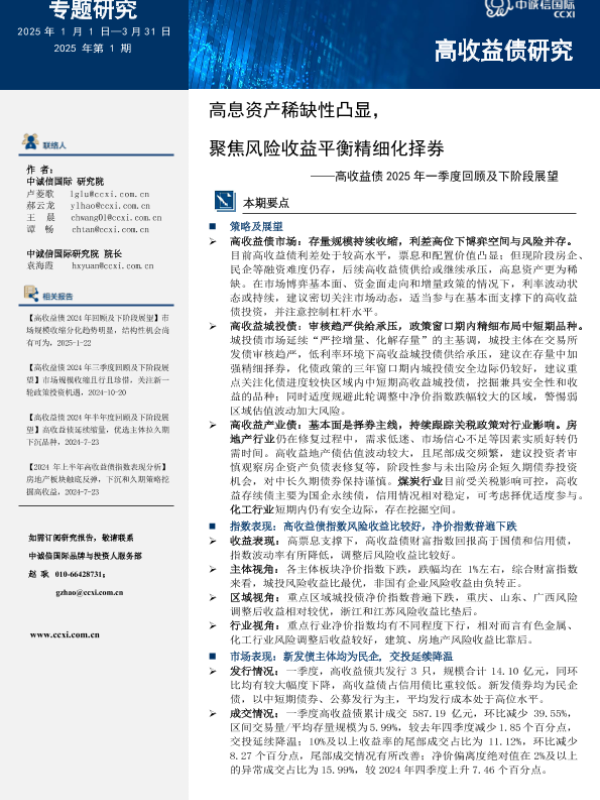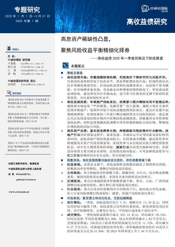 【中诚信国际】【20250101】高息资产稀缺性凸显,聚焦风险收益平衡精细化择券——高收益债2025年一季度回顾及下阶段展望-17页