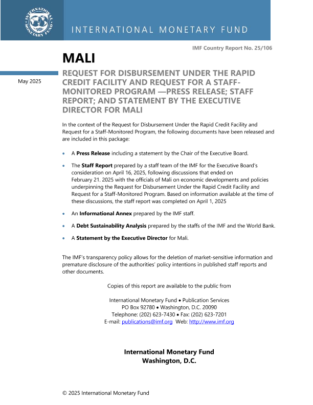 【International Monetary Fund】【20250416】REQUEST FOR DISBURSEMENT UNDER THE RAPID CREDIT FACILITY AND REQUEST FOR A STAFF-MONITORED PROGRAM-121页
