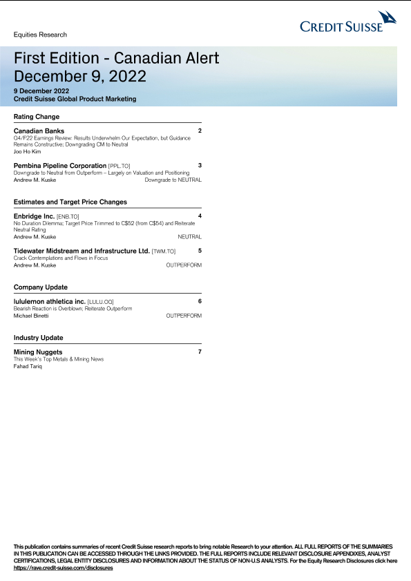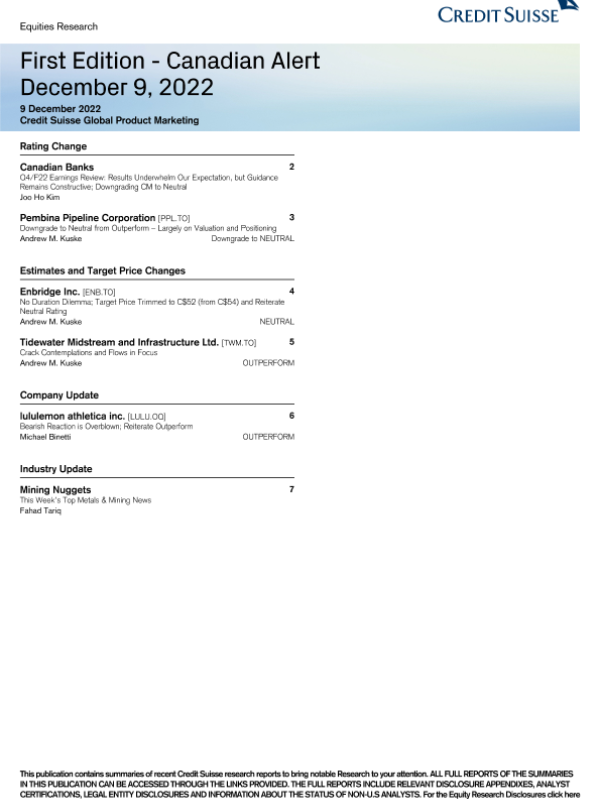 【Credit Suisse】【20221209】First Edition - Canadian Alert-7页