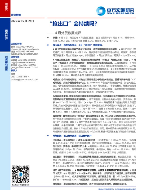 【申万宏源】【20250509】4月外贸数据点评:“抢出口”会持续吗?-10页