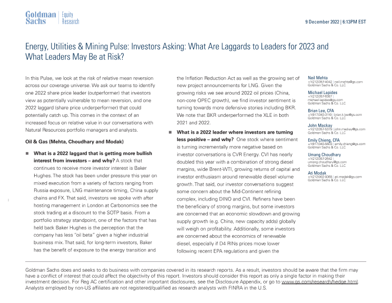 【Goldman Sachs】【20221209】Energy, Utilities & Mining Pulse Investors Asking What Are Laggards to Leaders for 2023 and What Leaders May Be at Risk?-24页